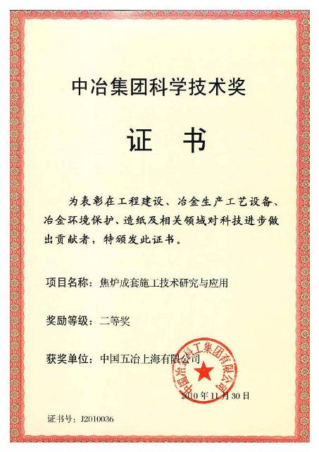2009年通过中冶鉴定,达到国际领先水平。